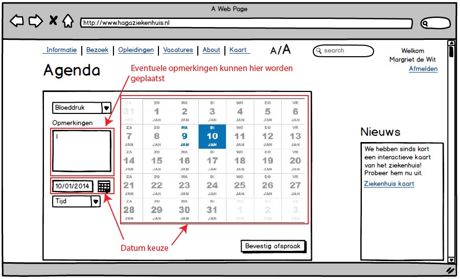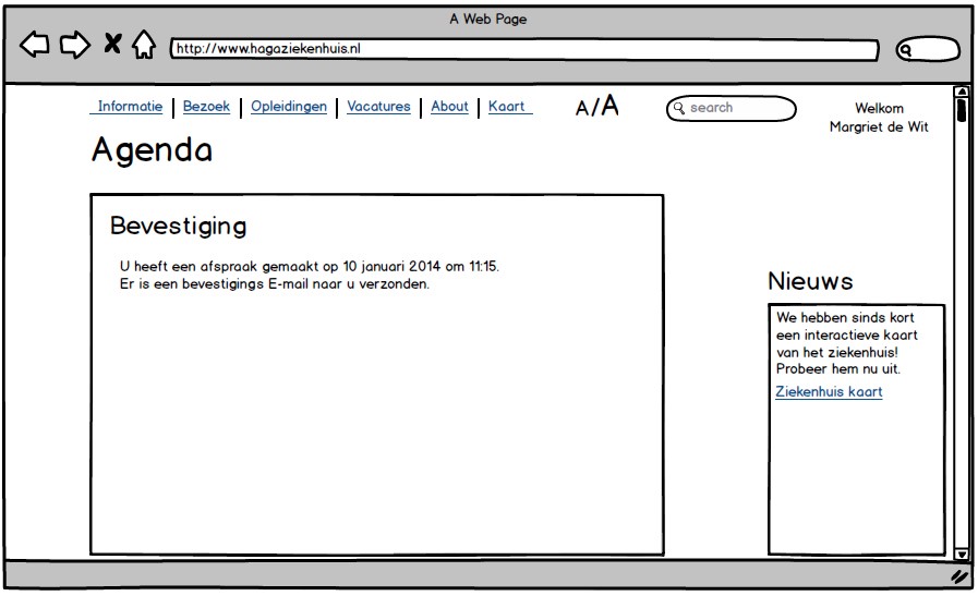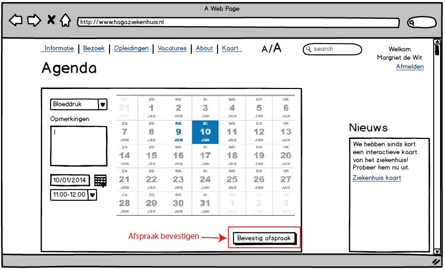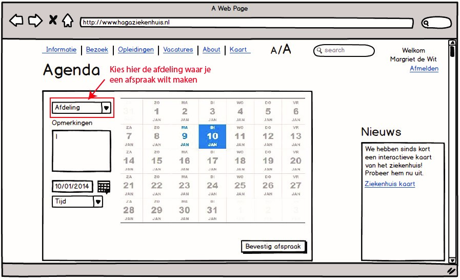 Het doel van dit project was het ontwerpen van een systeem waarin patiënten afspraken kunnen maken met artsen en zich voor kunnen bereiden op deze afspraken door passende informatie op te vragen. Het HAGA Ziekenhuis is de theoretische klant voor dit project.