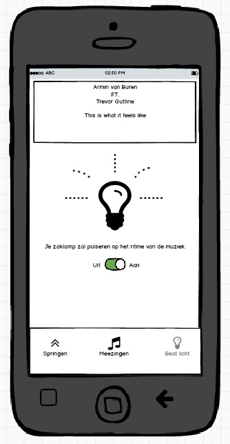 We werken het idee verder uit. We probeerden nog wat extra functies toe te voegen om de experience nog beter te maken: een knipperlicht en een meezingfunctie. Door tussentijds testen kwamen wij er alleen achter dat deze extra functies niet echt omarmd werden door de doelgroep. Als je een songtekst niet kent, sta je immers alleen maar naar je smartphone te kijken, iets wat we juist wilden voorkomen. Het knipperlicht werd als onnodig gezien. Iedereen heeft tegenwoordig immers al een zaklamp ingebouwd in zijn smartphone.