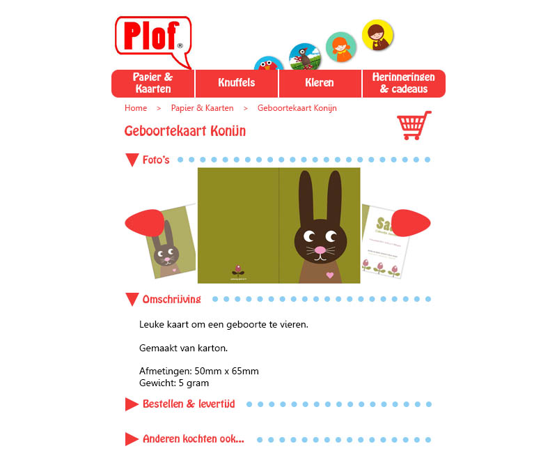 Plof.nl was een webshop met unieke producten. Je kon er leuk speelgoed en kleding voor kinderen kopen. De website had alleen een aantal usability-problemen dat opgelost moest worden. Zo werd er gebruik gemaakt van een bestelformulier in plaats van het bekende winkelwagentje dat nu in elke webshop wordt gebruikt. Dit zou het moeilijk maken voor een gebruiker om te kopen wat hij wil hebben, aangezien hij moet onthouden hoe het product heet en deze vervolgens op het bestelformulier zou moeten vinden en aanstrepen. Om alle andere verbeterpunten te vinden, heb ik een Heuristic Evaluation uitgevoerd. De Heuristic Evaluation is ingedeeld in verschillende categorieën, welke vervolgens kunnen worden beoordeeld en een goed beeld vormen van de verschillende punten waarop de site kan worden verbeterd.