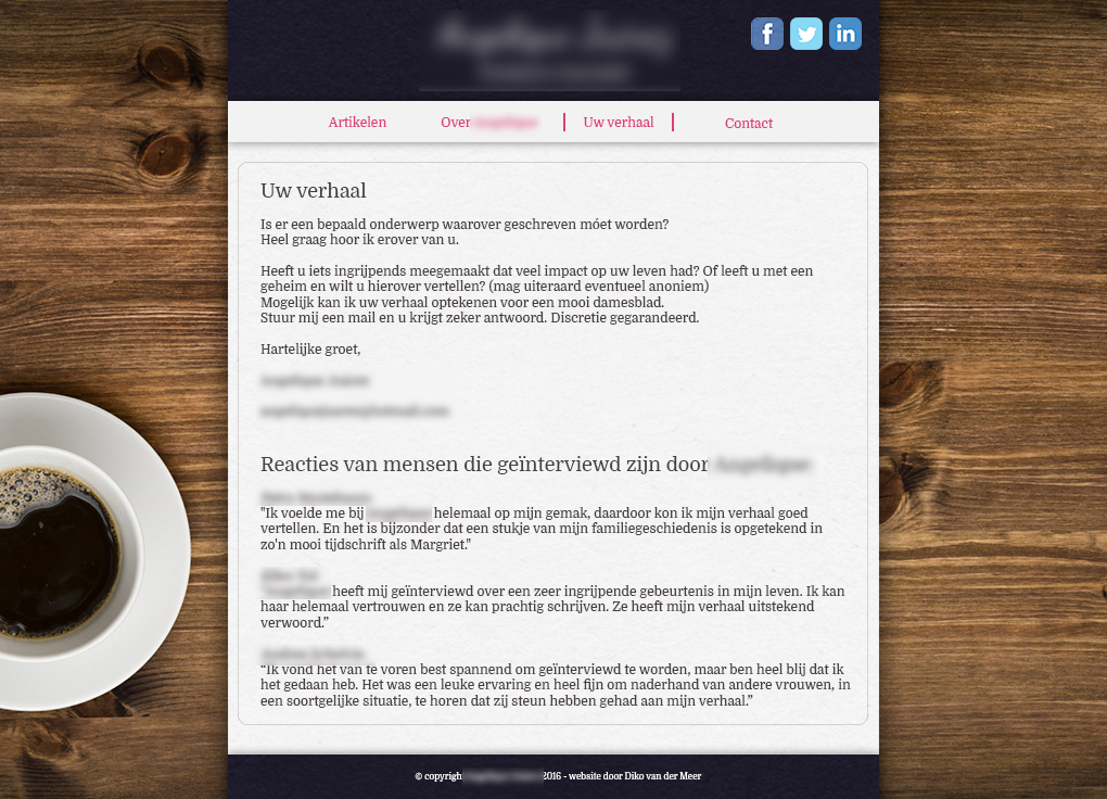 Dit was mijn eerste project dat niet direct of indirect uit de opleiding CMD volgde. Het project is het ontwerpen en maken van een portfoliowebsite voor een freelance journalist. Ik zou hierbij zowel het design als de realisatie op mij nemen.