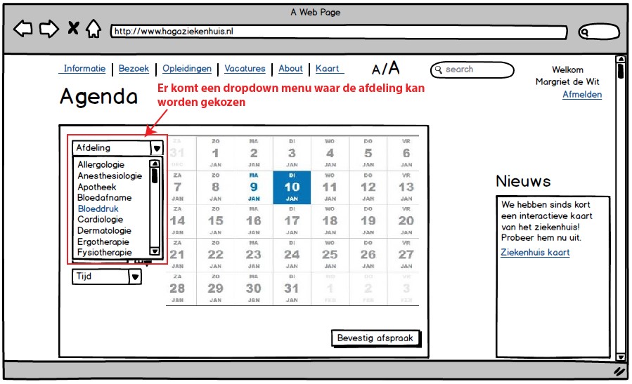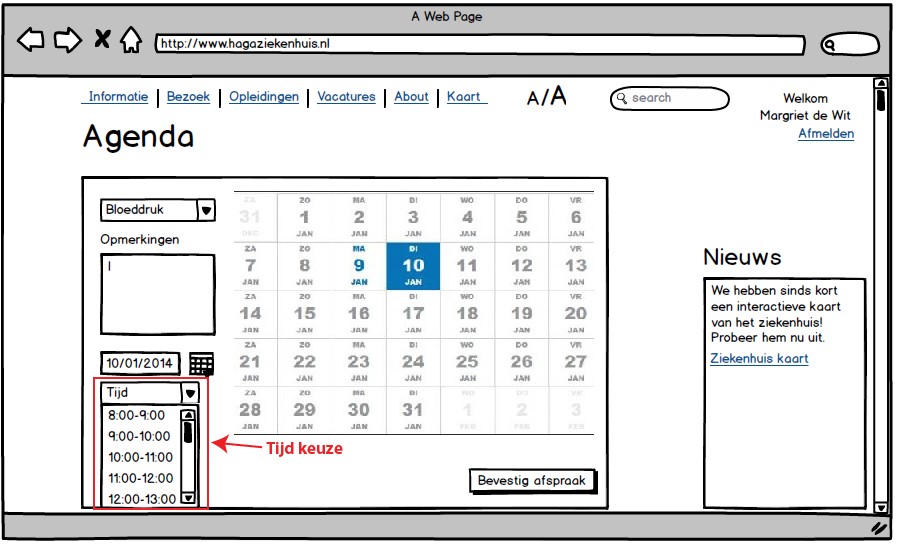 Het doel van dit project was het ontwerpen van een systeem waarin patiënten afspraken kunnen maken met artsen en zich voor kunnen bereiden op deze afspraken door passende informatie op te vragen. Het HAGA Ziekenhuis is de theoretische klant voor dit project.