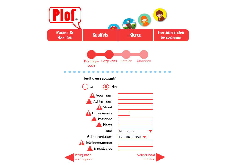 Plof.nl was een webshop met unieke producten. Je kon er leuk speelgoed en kleding voor kinderen kopen. De website had alleen een aantal usability-problemen dat opgelost moest worden. Zo werd er gebruik gemaakt van een bestelformulier in plaats van het bekende winkelwagentje dat nu in elke webshop wordt gebruikt. Dit zou het moeilijk maken voor een gebruiker om te kopen wat hij wil hebben, aangezien hij moet onthouden hoe het product heet en deze vervolgens op het bestelformulier zou moeten vinden en aanstrepen. Om alle andere verbeterpunten te vinden, heb ik een Heuristic Evaluation uitgevoerd. De Heuristic Evaluation is ingedeeld in verschillende categorieën, welke vervolgens kunnen worden beoordeeld en een goed beeld vormen van de verschillende punten waarop de site kan worden verbeterd.